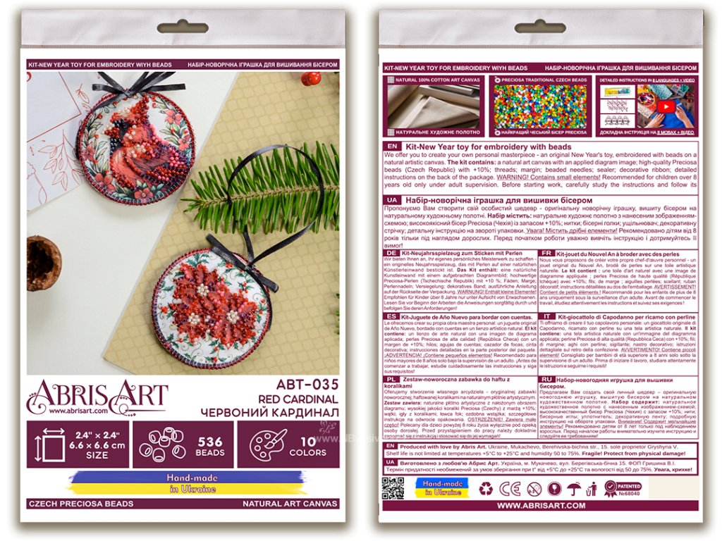 Balení obsahuje: potištěné malířské plátno s místy na přišití korálků (10 barev)barevné korálky Preciosanávodjehla Rozměr: 6,6x6,6cm
