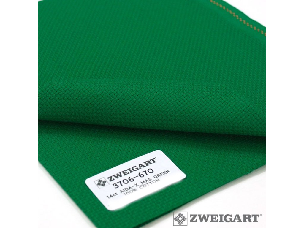 Vyšívací látka s pravidelnou strukturou 14ct (5,5 vláken/cm). Odpovídá cca odstínu příze DMC č.909. Materiál: 100% bavlna Barva: tmavě zelená Rozměr: 150x100cm