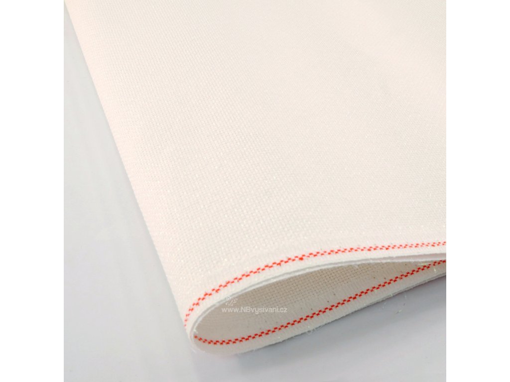 Vyšívací látka s pravidelnou strukturou 16ct (6,3 vláken/cm). Materiál: 91% bavlna,9% polyester Barva: bílá se stříbrným třpytem Kreiniku 032. Rozměr: 55x50cm