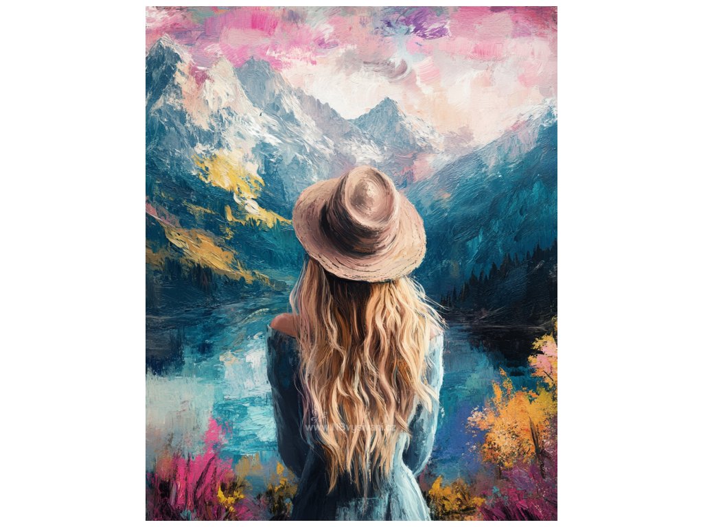plátno s předtištěným motivem pokryté lepící vrstvou nataženou na dřevěném rámu