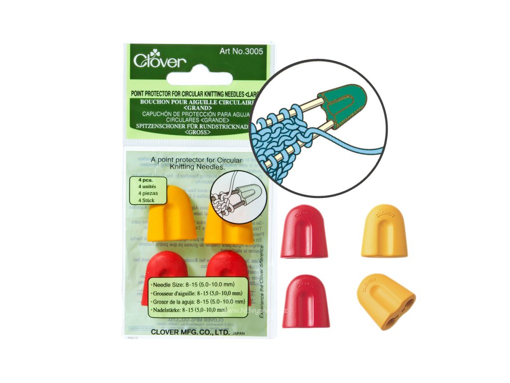 Velký ochranný kryt (point protector) určený pro kruhové i rovné jehlice. Slouží k zajištění ok, aby nesklouzly z jehlic, když přerušíte práci. Vhodné pro jehlice od 5,0 do 10,0 mm .