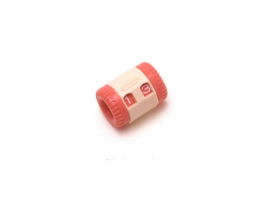 Mechanické počítadlo řádků (knitting register), které se nasazuje přímo na rovné jehlice. Pomáhá přehledně sledovat počet dokončených řad v rozmezí 00–99 při ručním pletení.