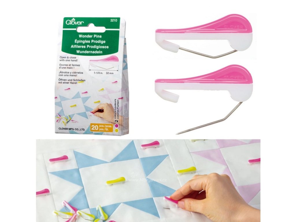 Zázračné špendlíky Clover mají revoluční koncept zavíracích špendlíků, jdou otevřít a zavřít jednou rukou díky ergonomickému uchopení, které je nejen praktické, ale také zajišťuje bezpečnou práci. Špendlíky jsou z pevného materiálu, takže si hravě poradí s více vrstvami látek, ale jsou dostatečně tenké na to, aby v látce nezanechali díry. Špendlíky velice dobře drží a díky reflexní barvě jsou snadno viditelné. Balení obahuje 20ks, délka zavíracího špendlíku je 32mm.