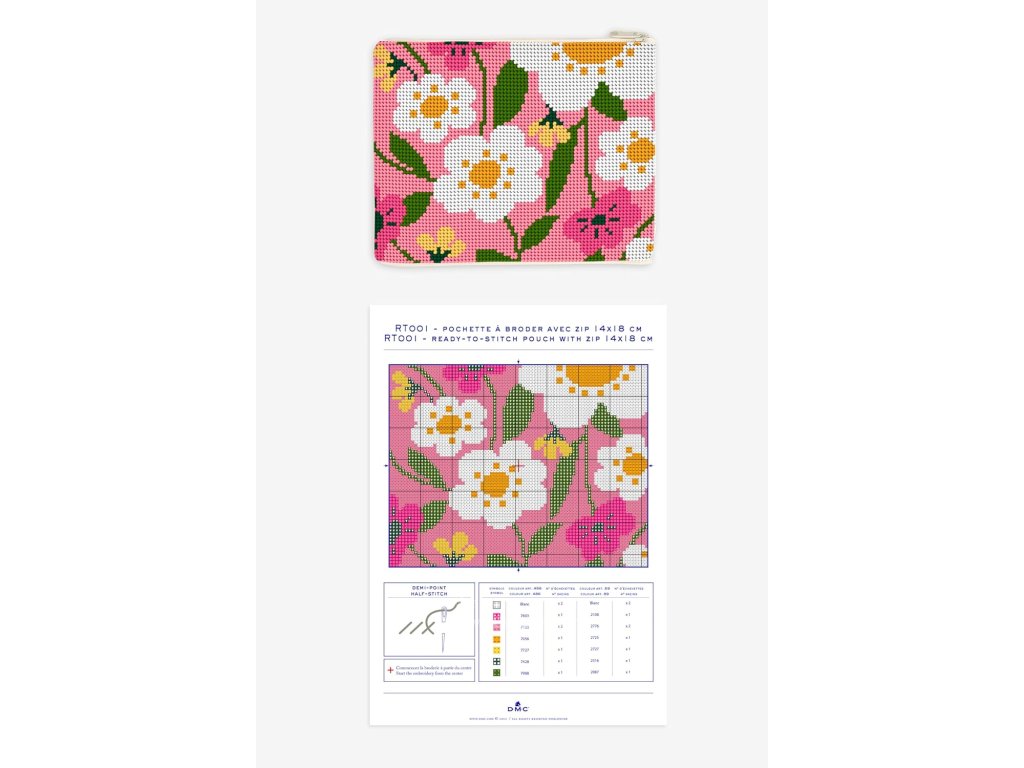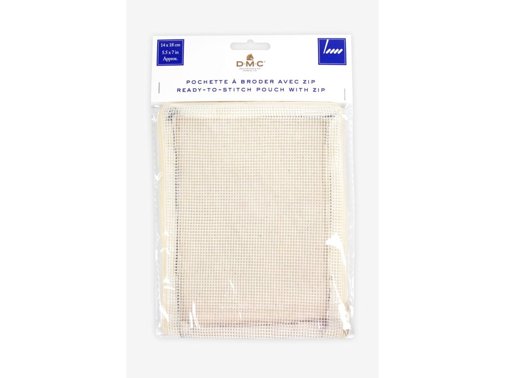 Taštička na zip k vyšití firmy DMC (Needlepoint Kit). Rozměr 14x18cm, předloha zdarma. Materiál 100% bavlna a 100% polyester.