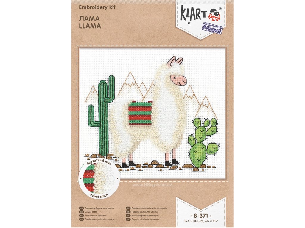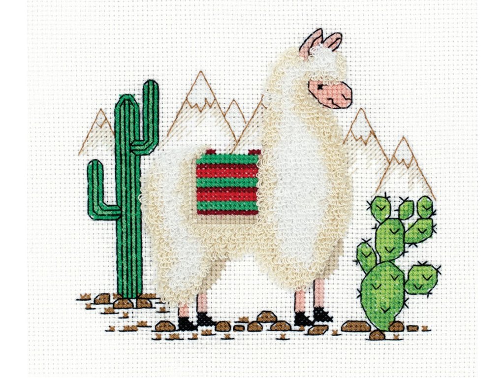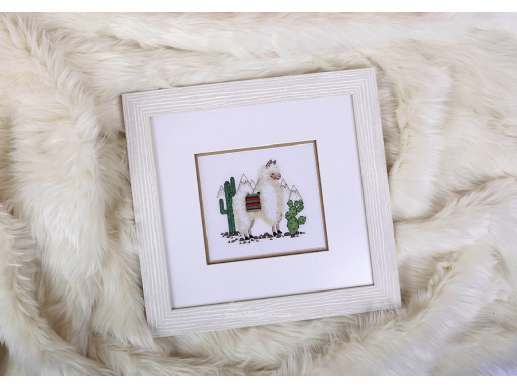 V této sadě je lama vyšita technikou Velvet Stitch.