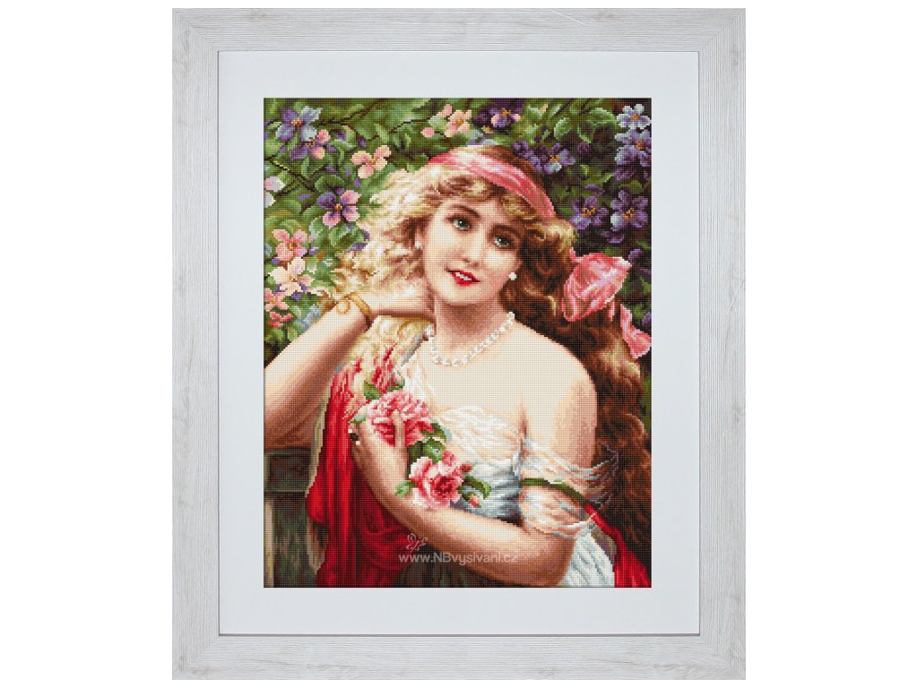 LUC-G549 Dívka s růžemi (gobelínový steh)