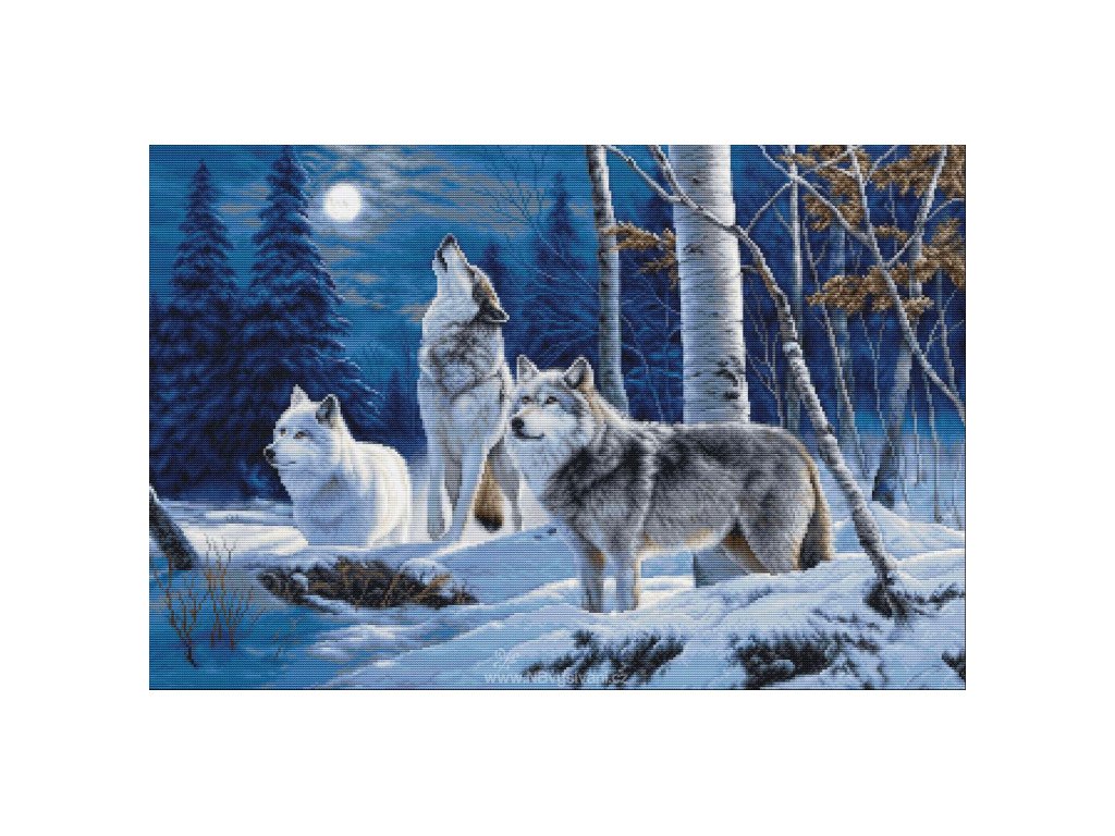 LUC-G727 Vyjící vlci a zimní měsíc (gobelínový steh)