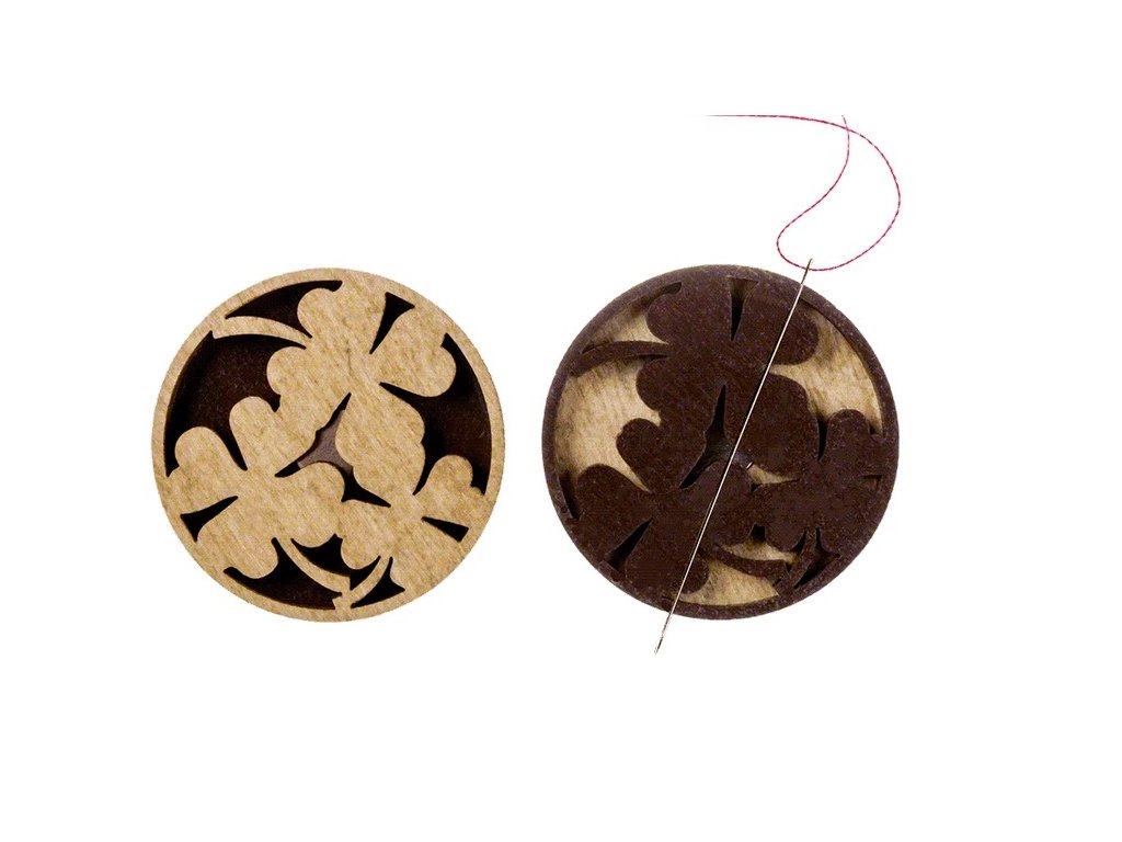 Oboustranný magnet ze zdobené překliž kypro uchycení jehel. Stačí pouze přicvaknout na vyšívací látku a máte vše potřebné ihned po ruce.