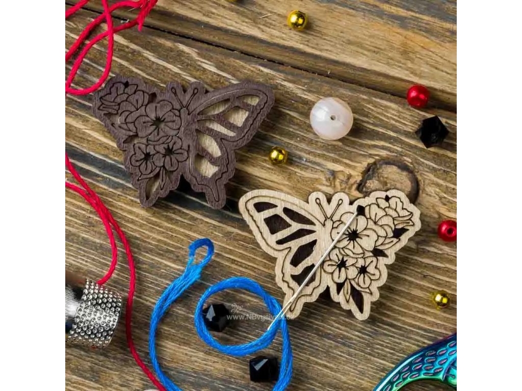 Oboustranný magnet ze zdobené překliž kypro uchycení jehel. Stačí pouze přicvaknout na vyšívací látku a máte vše potřebné ihned po ruce.