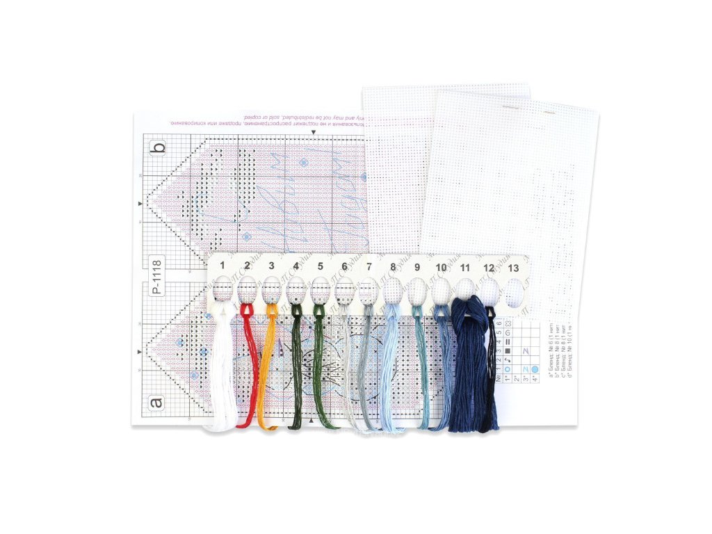 Balení obsahuje: bavlněné příze Gamma (12 barev)plastová Aida 14ct papírová předloha návod jehla Rozměr: 5x13cm