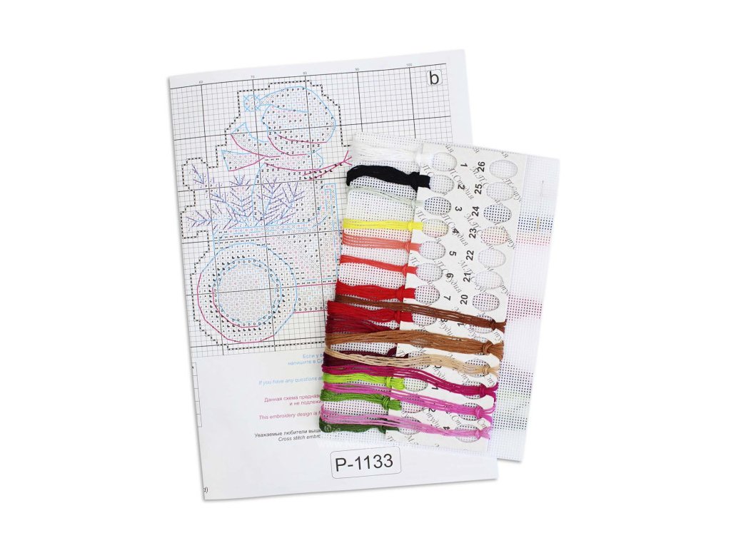 Balení obsahuje: bavlněné příze Gamma (19 barev)plastová Aida 14ctpapírová předloha a elektronické schéma pro program Makosh návod jehla Rozměr: 9x9cm