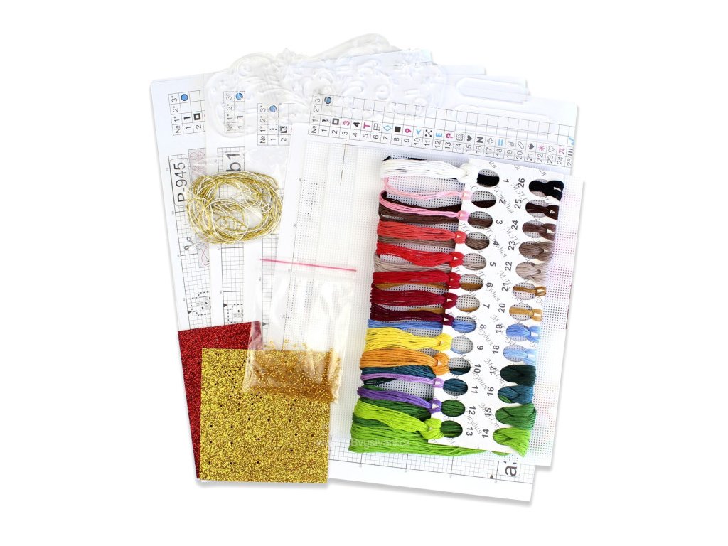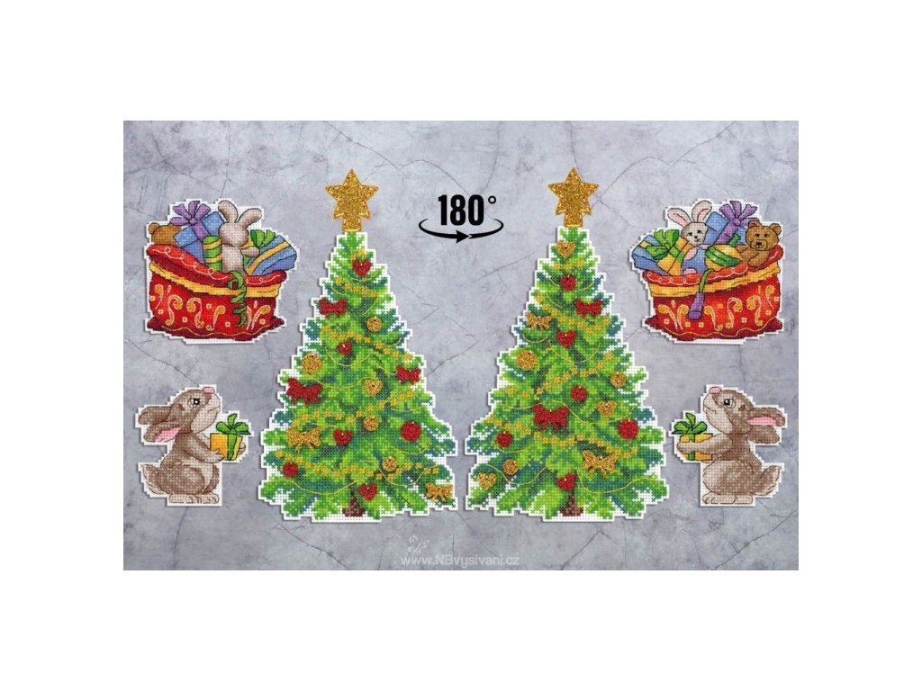 Balení obsahuje: bavlněné příze Gamma (28 barev)plastová Aida 14ct papírová předloha akrylový stojánek a ficové ozdoby návod jehla Rozměr: 20x13cm, 10x11cm a 8x8cm