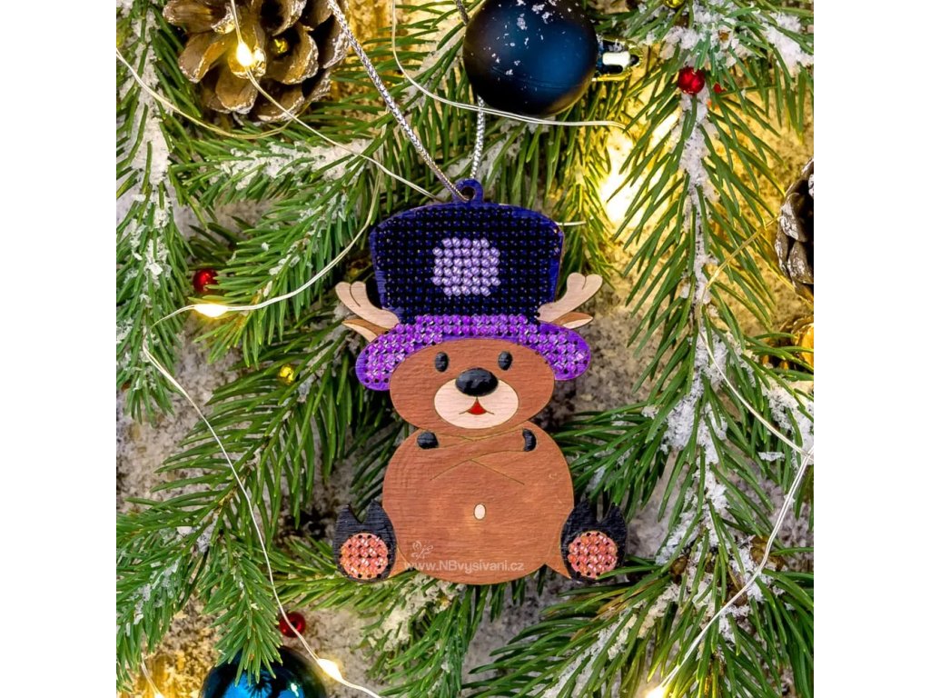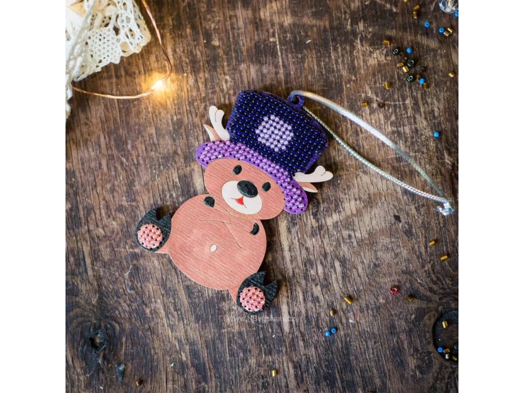 WON-FLK007 Vánoční ozdoba - medvídek (vyšívaná korálková překližka)