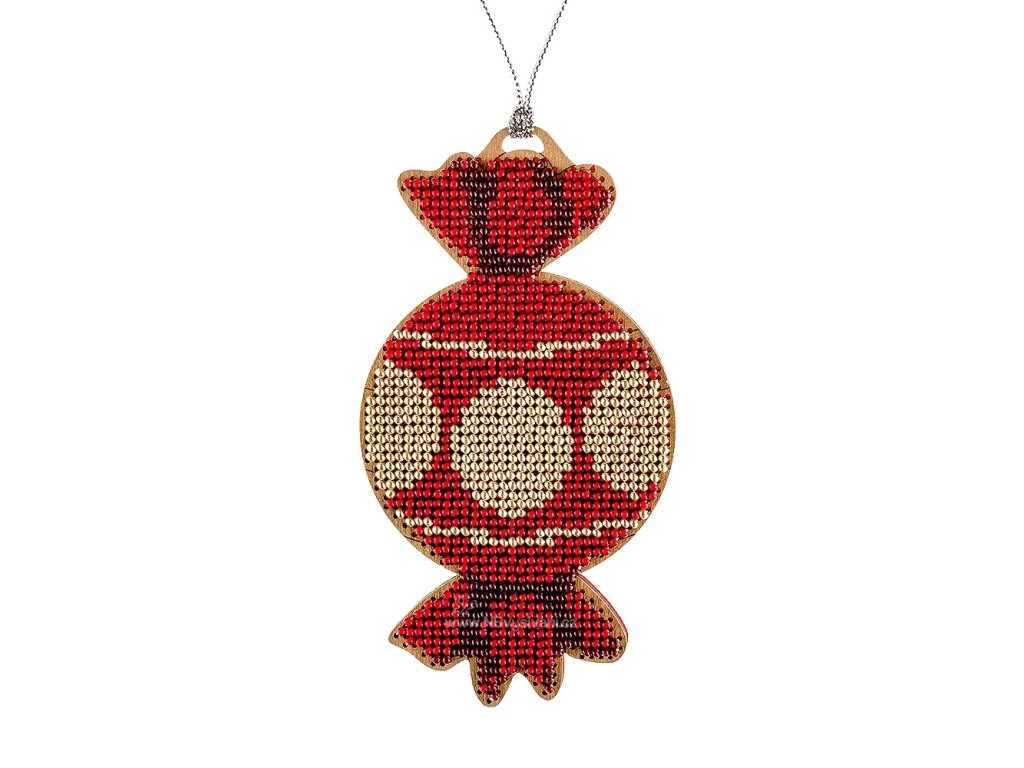 WON-FLK064 Vánoční ozdoba - bonbón (vyšívaná korálková překližka)