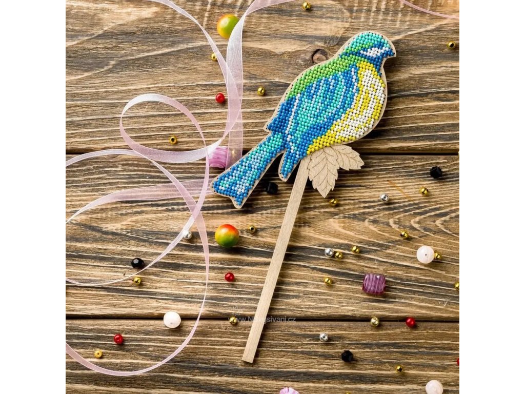 WON-FLK099 Zápich - ptáček (vyšívaná korálková překližka)