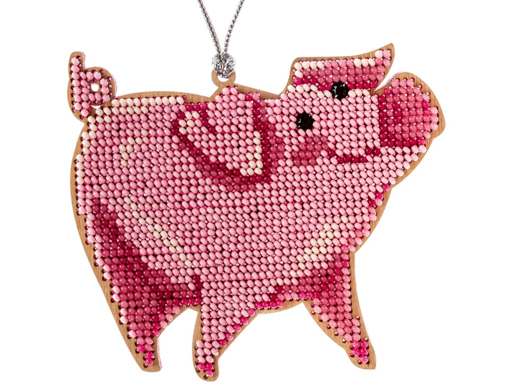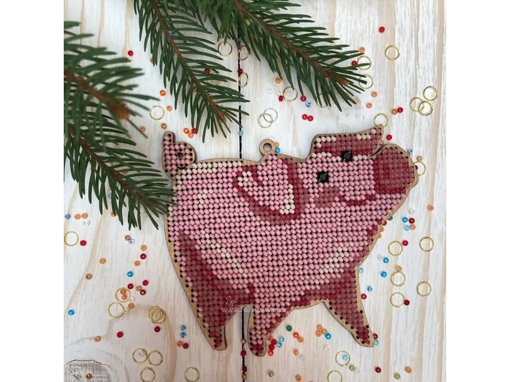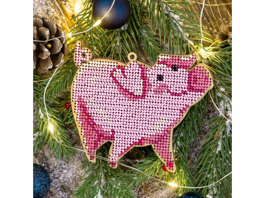 WON-FLK155 Vánoční ozdoba - prasátko (vyšívaná korálková překližka)