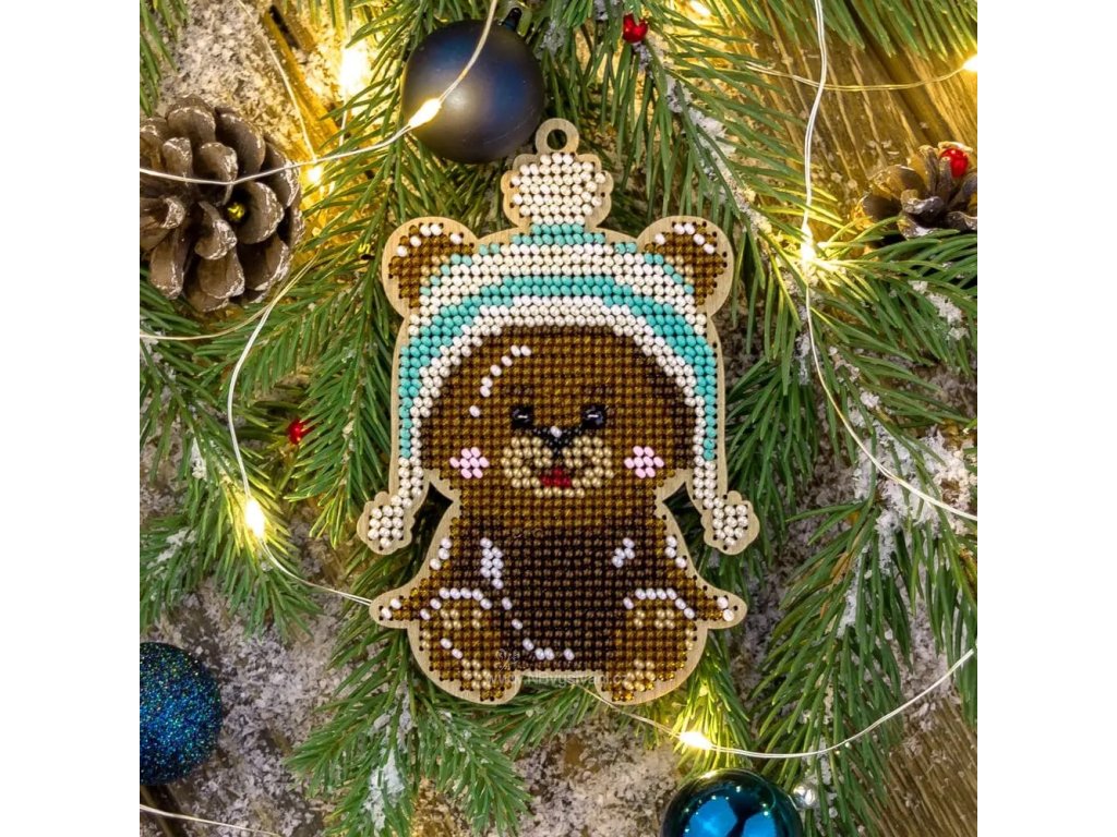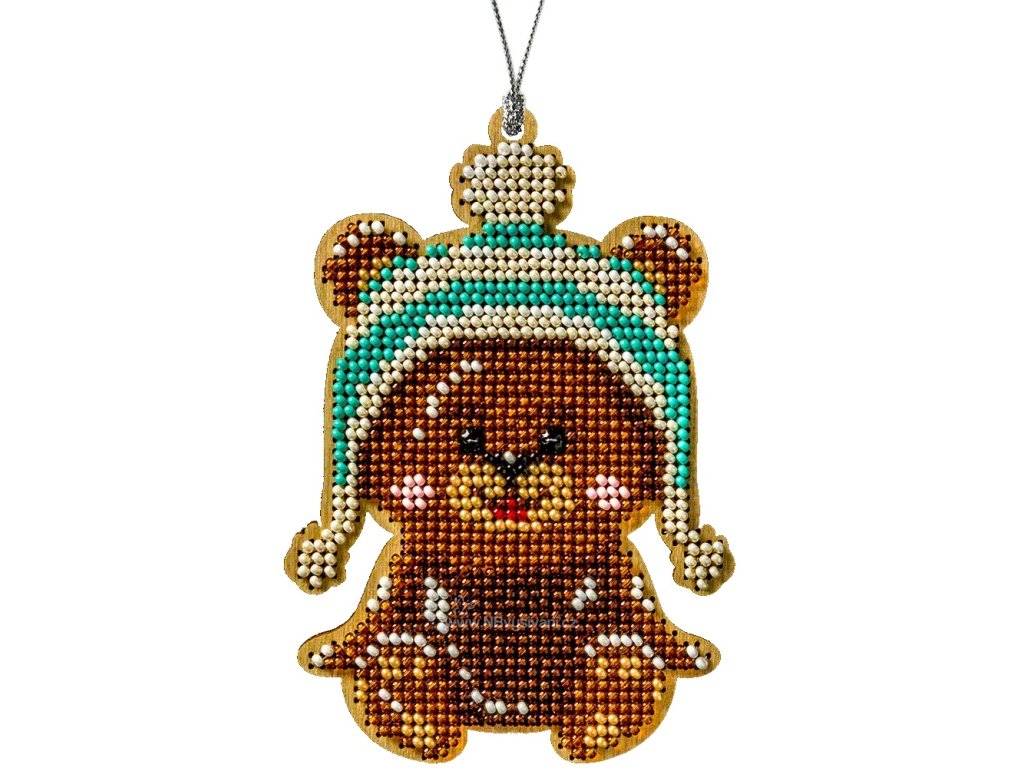 WON-FLK238 Vánoční ozdoba - mevídek (vyšívaná korálková překližka)