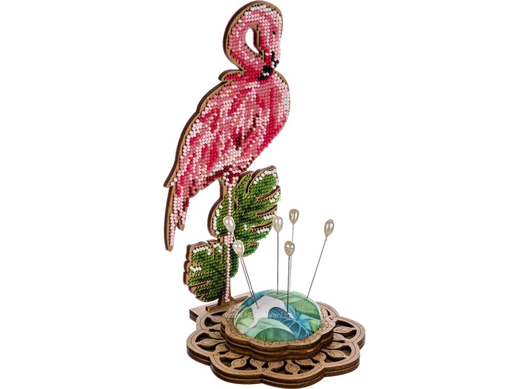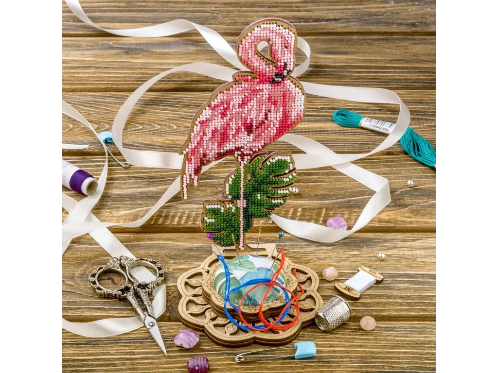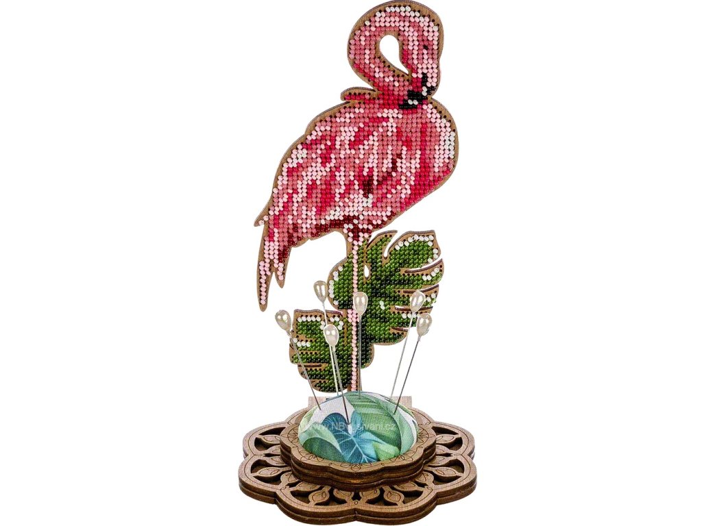 WON-FLK284 Jehelníček - plameňák (vyšívaná korálková překližka)