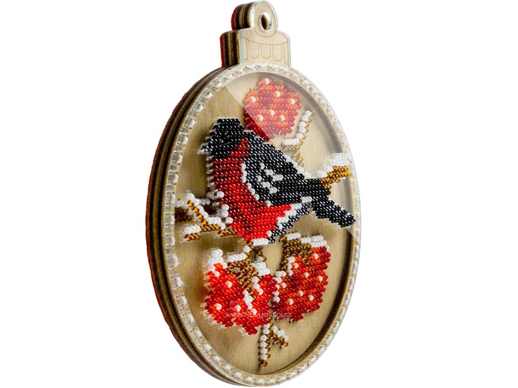 WON-FLK367 Vánoční ozdoba - hýl a jeřabiny (vyšívaná korálková překližka)