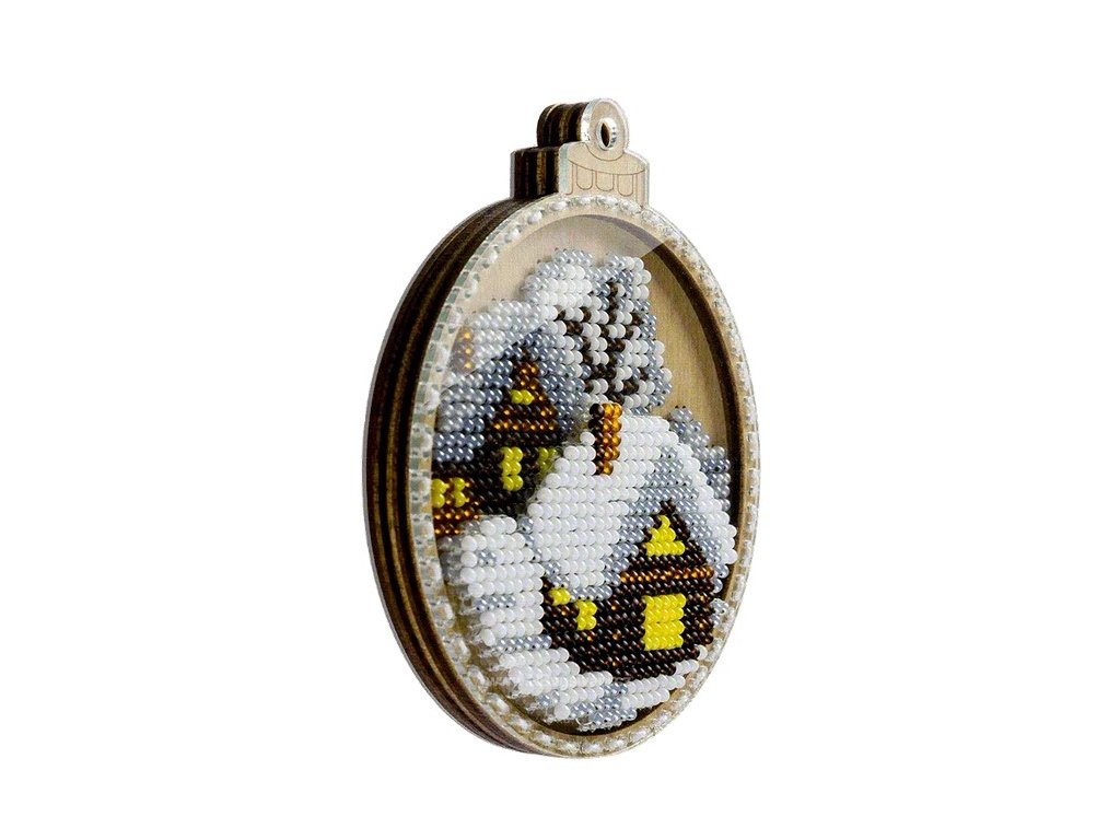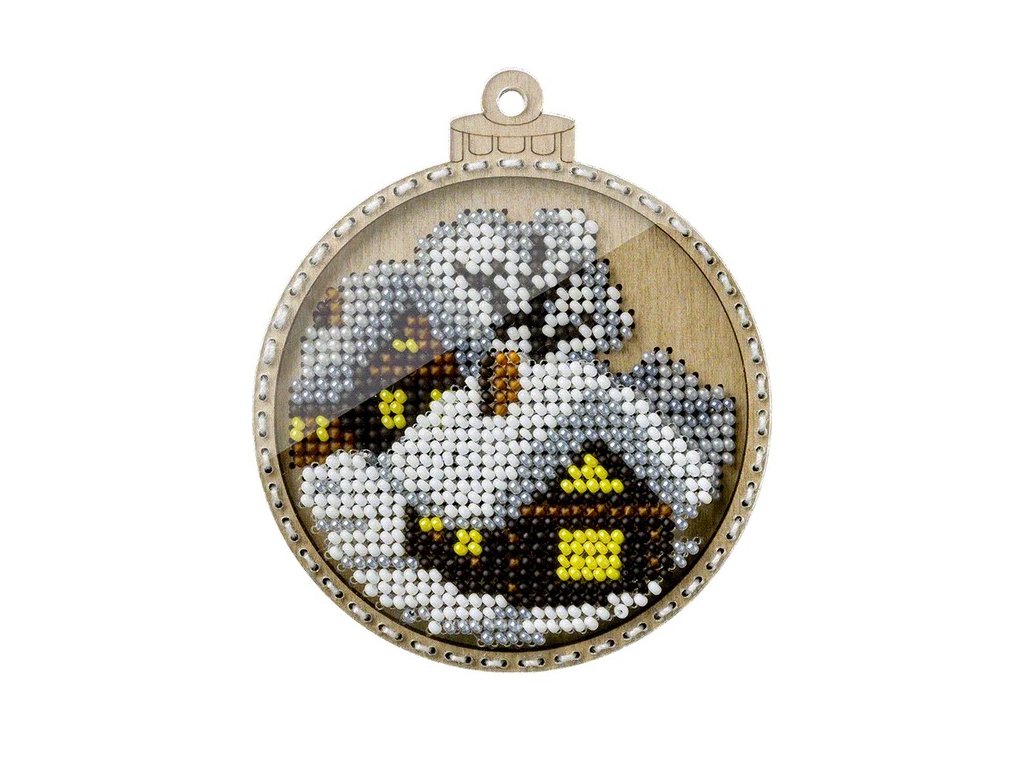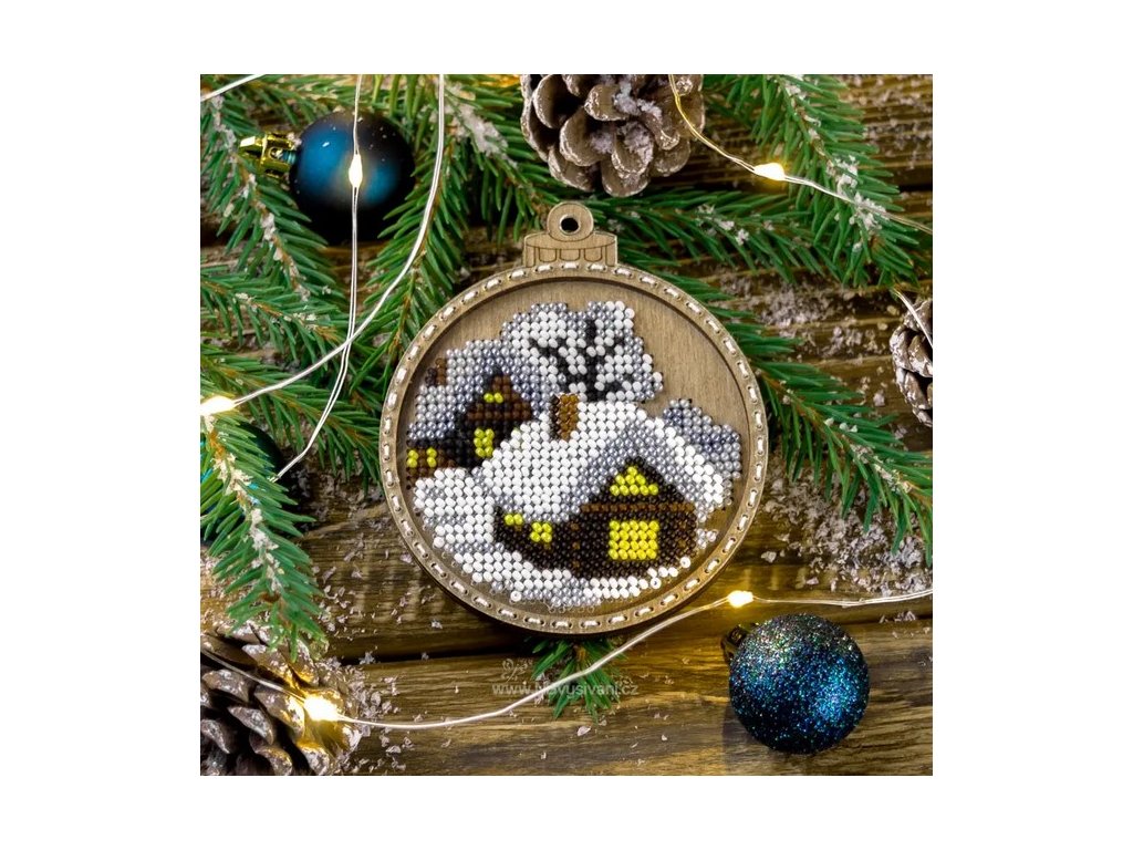 WON-FLK370 Vánoční ozdoba - zimní vesnička (vyšívaná korálková překližka)