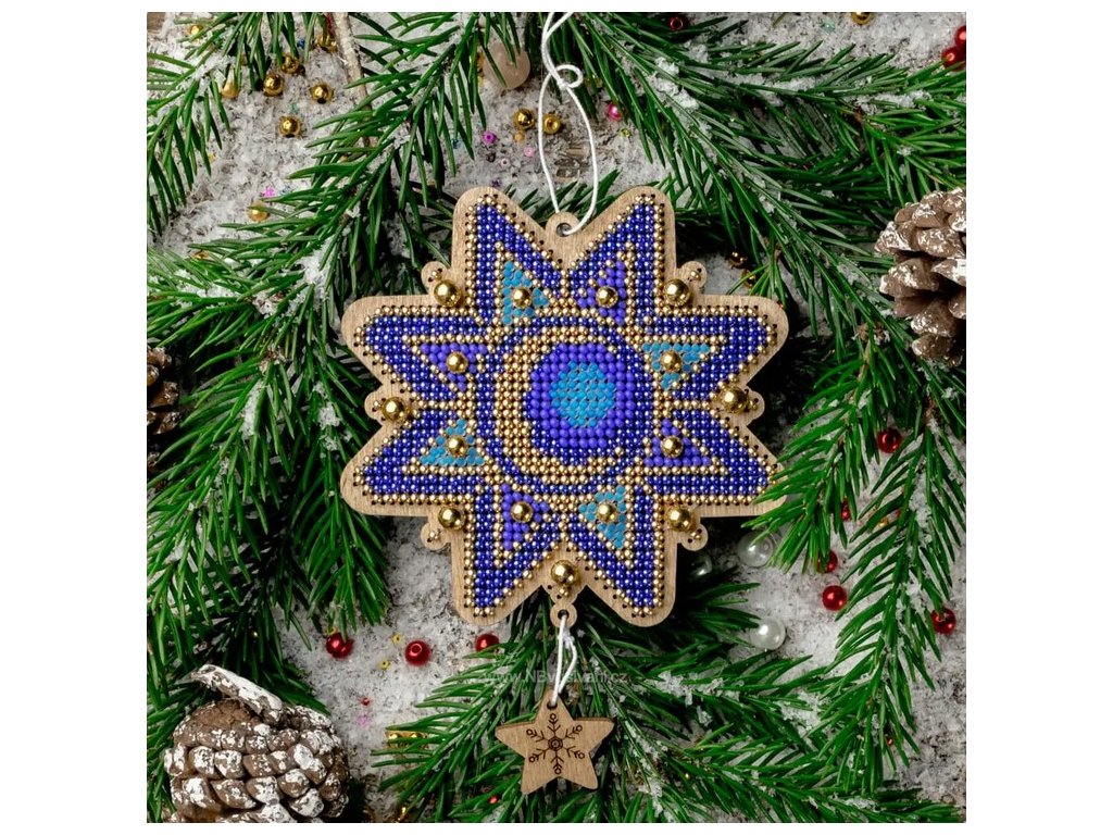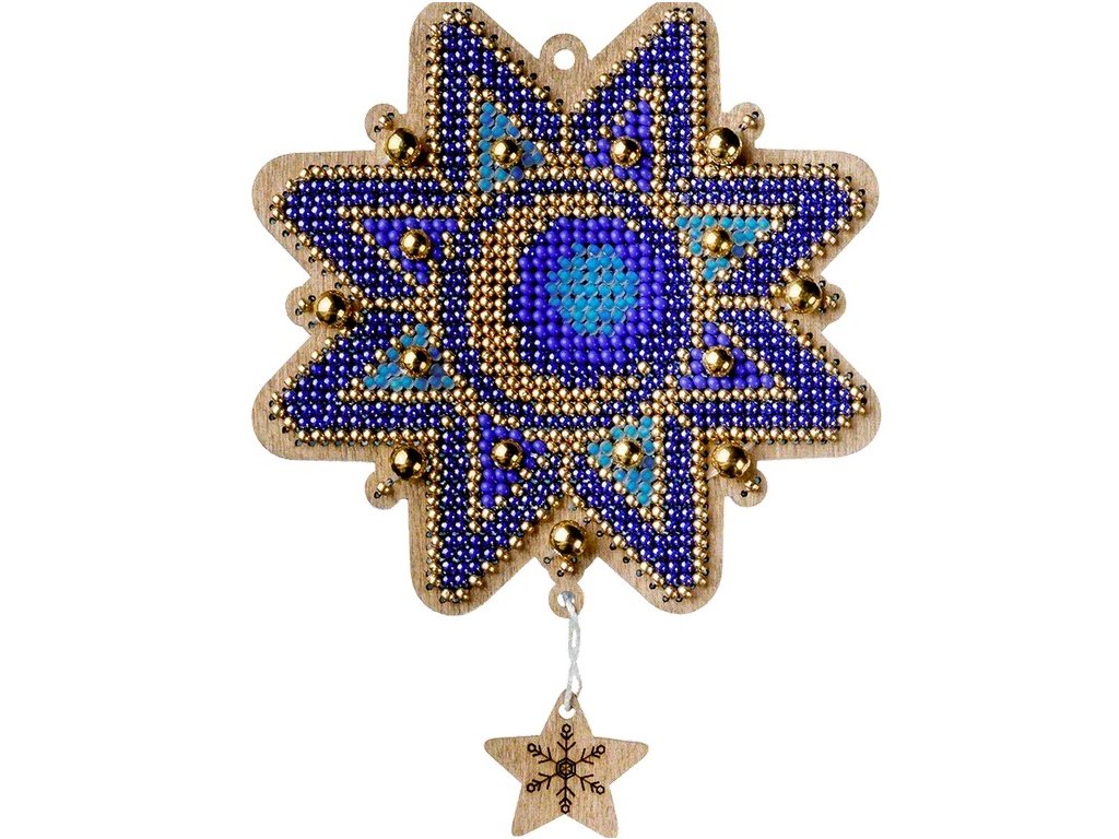 WON-FLK459 Vánoční ozdoba - hvězda (vyšívaná korálková překližka)