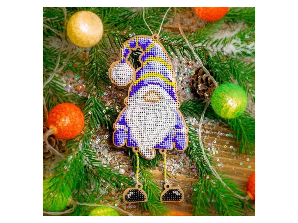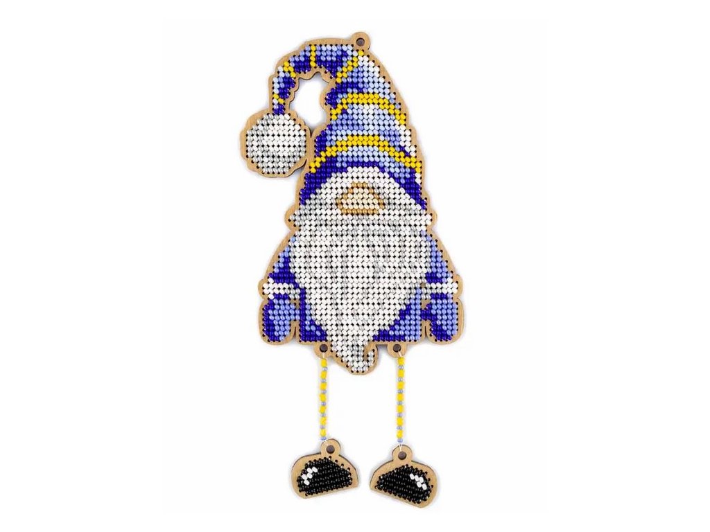 WON-FLK493 Vánoční ozdoba - Santa v modrém (vyšívaná korálková překližka)