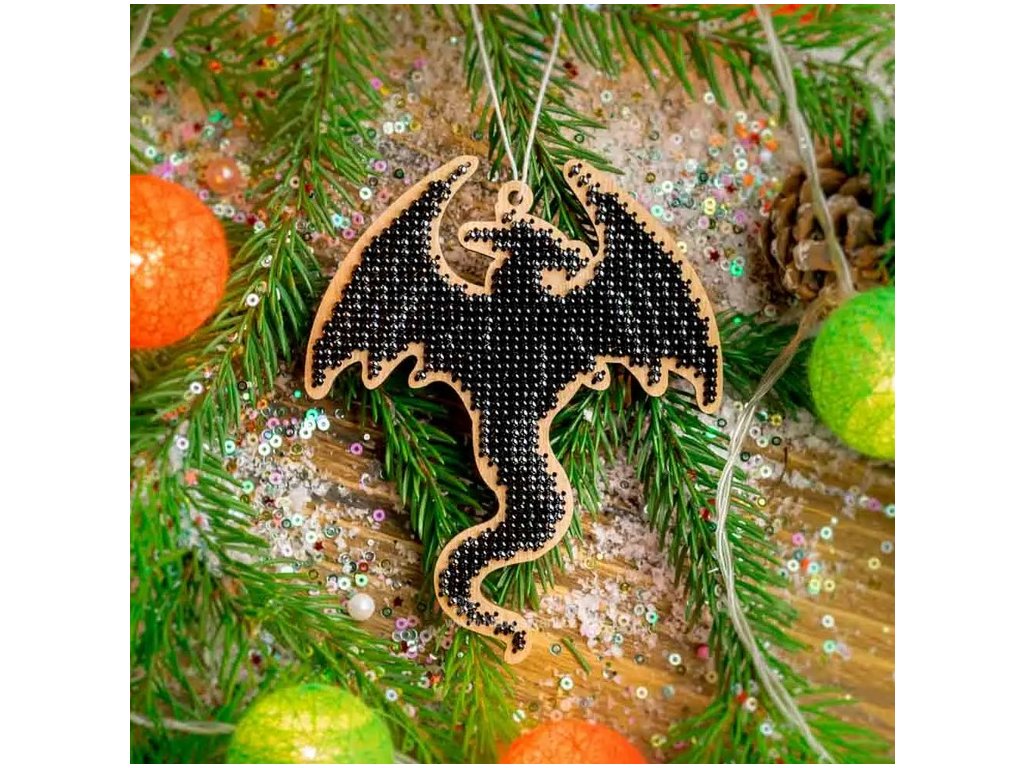 WON-FLK504 Vánoční odoba - dráček (vyšívaná korálková překližka)