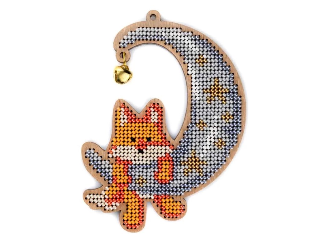 WON-FLK508 Vánoční odoba - liška a měsíček (vyšívaná korálková překližka)