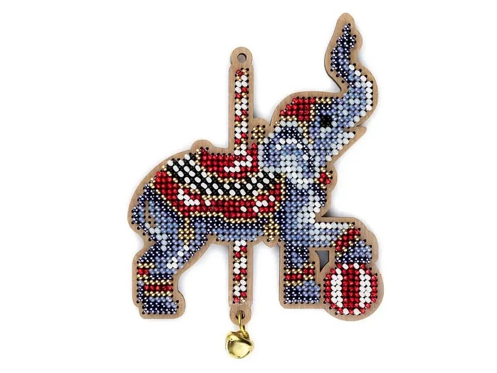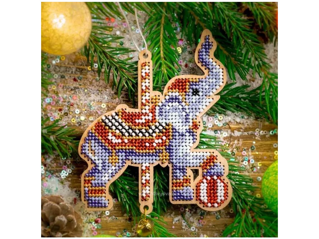 WON-FLK513 Vánoční odoba - slon (vyšívaná korálková překližka)
