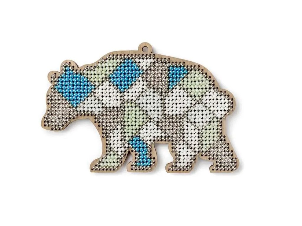 WON-FLK569 Vánoční ozdoba - medvěd (vyšívaná korálková překližka)