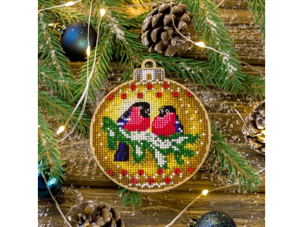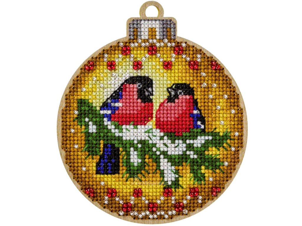 WON-FLW001 Vánoční ozdoba - ptáčci na větvi (vyšívaná překližka)