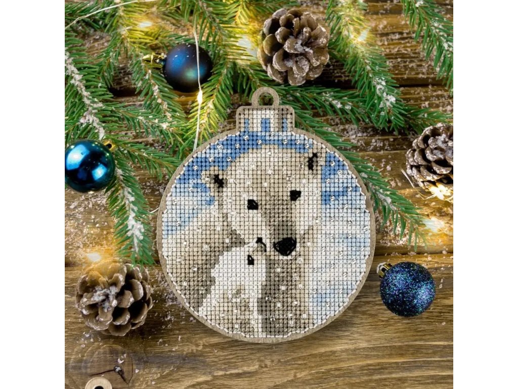 WON-FLW016 Vánoční ozdoba - lední medvědi (vyšívaná překližka)
