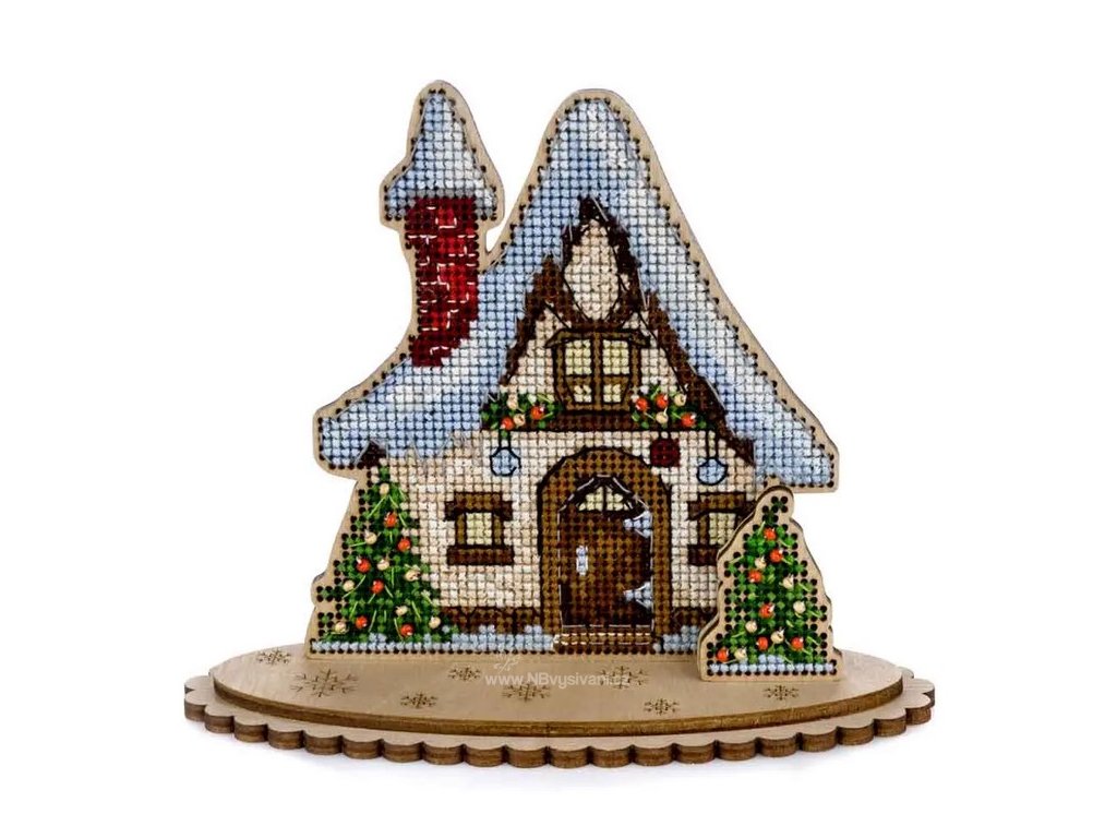 WON-FLW047 Svátečně vyzdobená chaloupka (vyšívaná překližka)