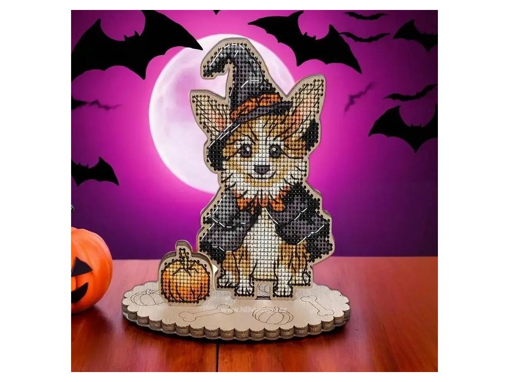 WON-FLW050 Halloween s čivavou (vyšívaná překližka)