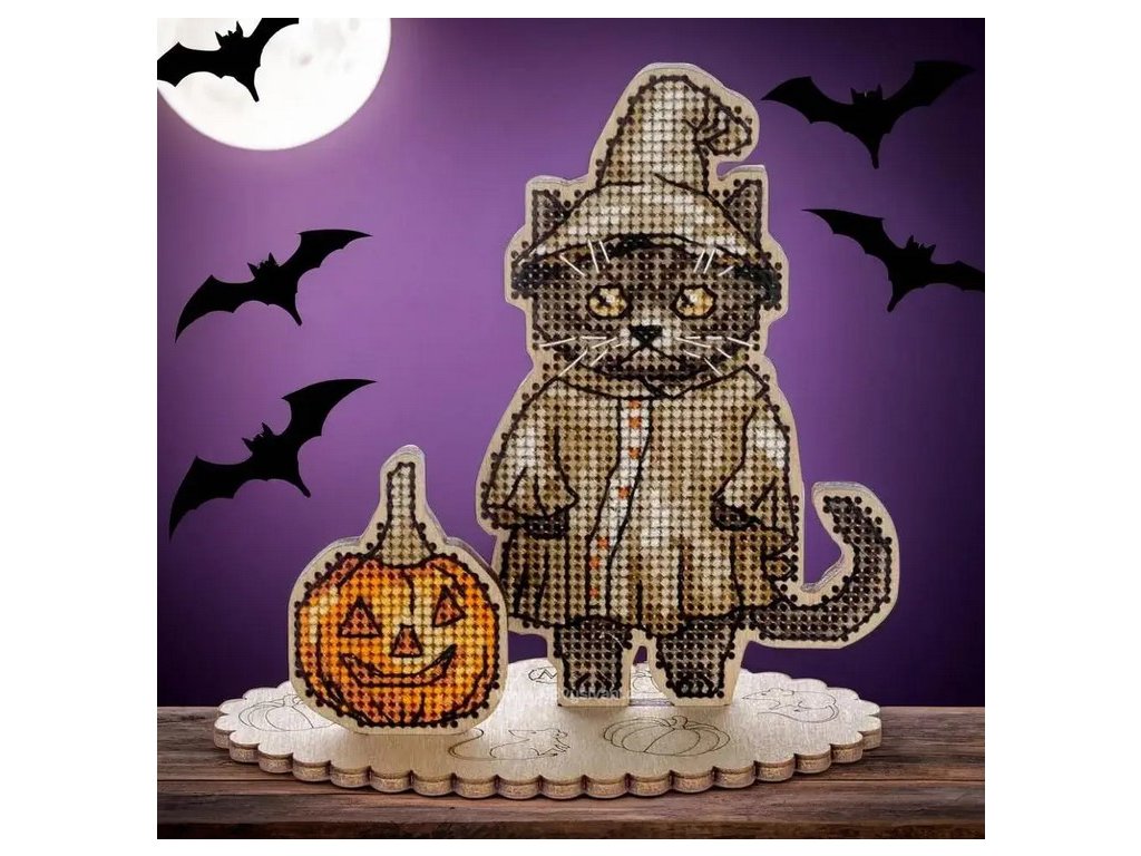 WON-FLW058 Halloween s kočičkou (vyšívaná překližka)