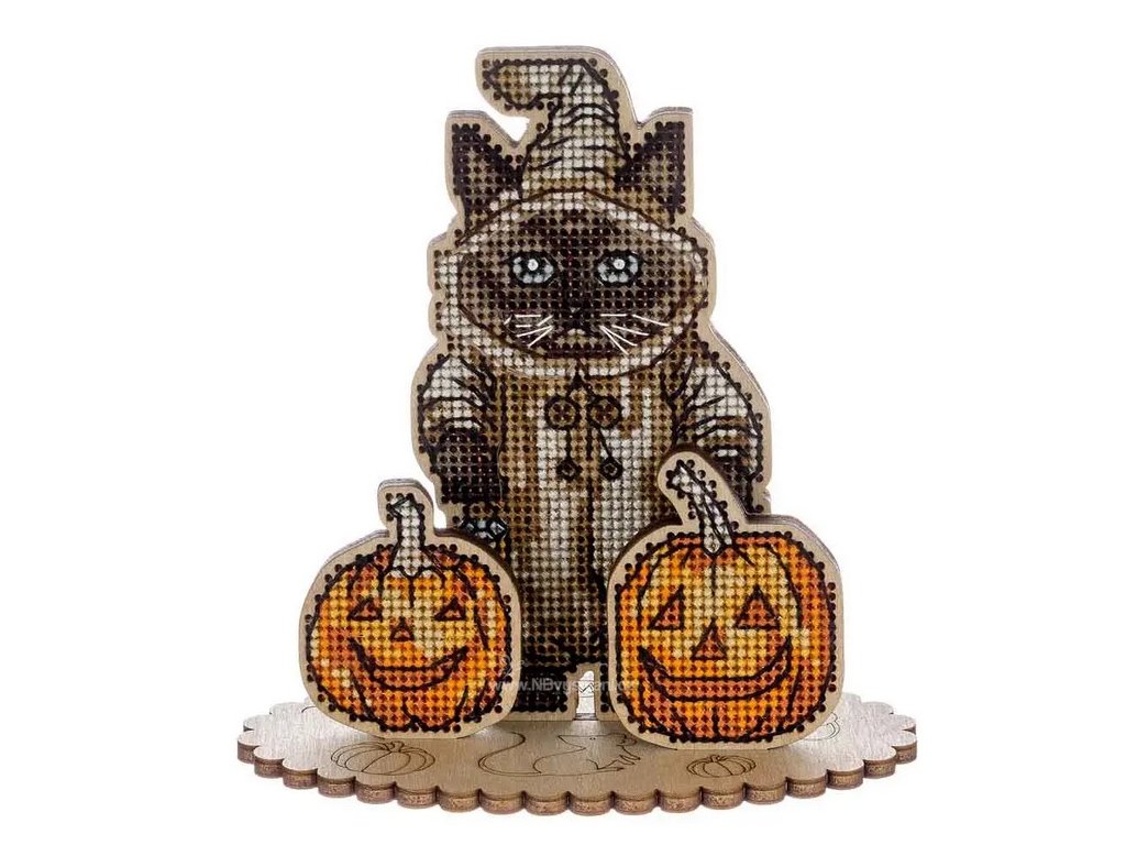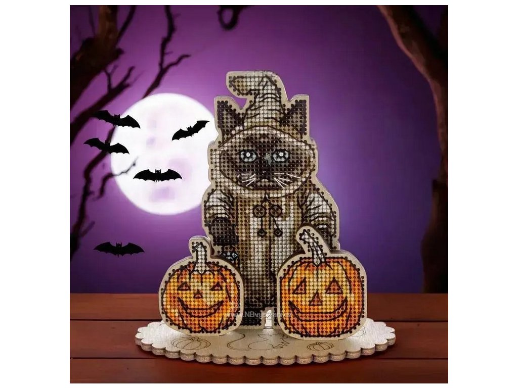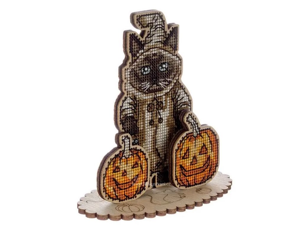 WON-FLW059 Halloween s kocourem (vyšívaná překližka)