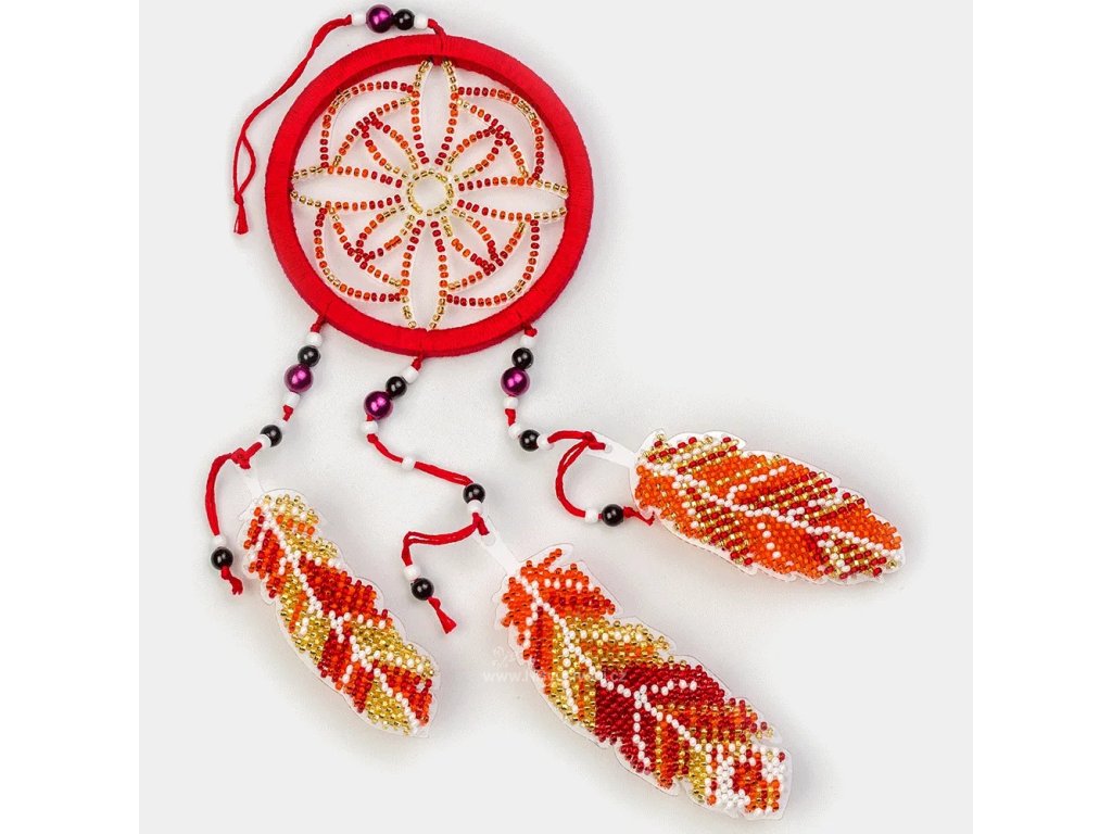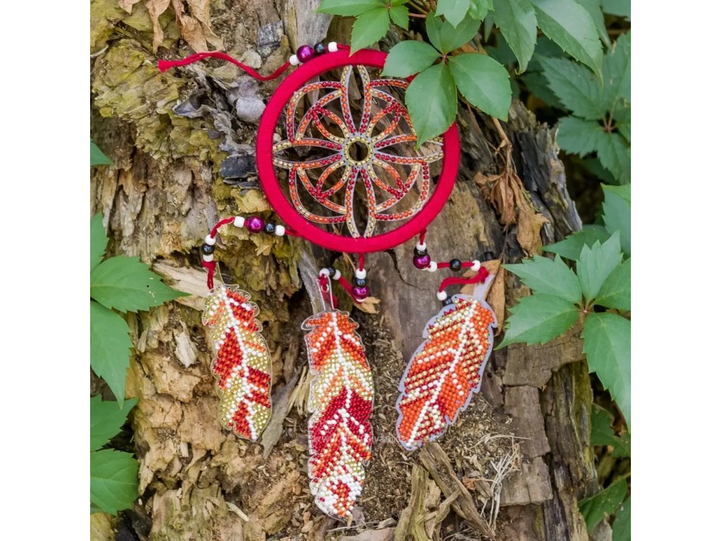 WON-FLPL023 Lapač snů - červený (vyšívaný plastový podklad)