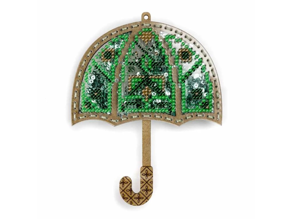 WON-FLPL071 Zelený deštník (vyšívaný plastový podklad)