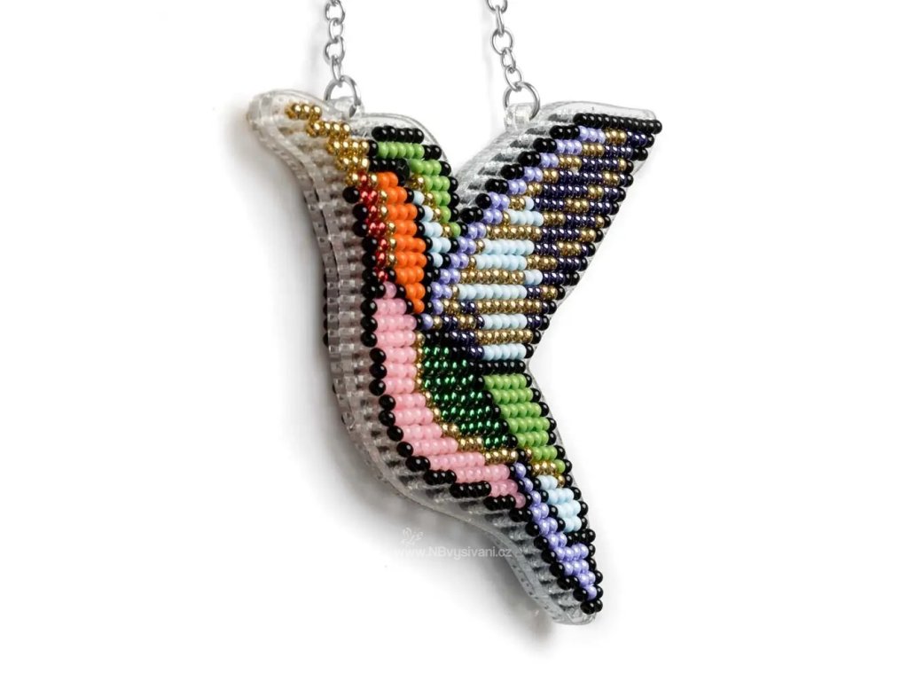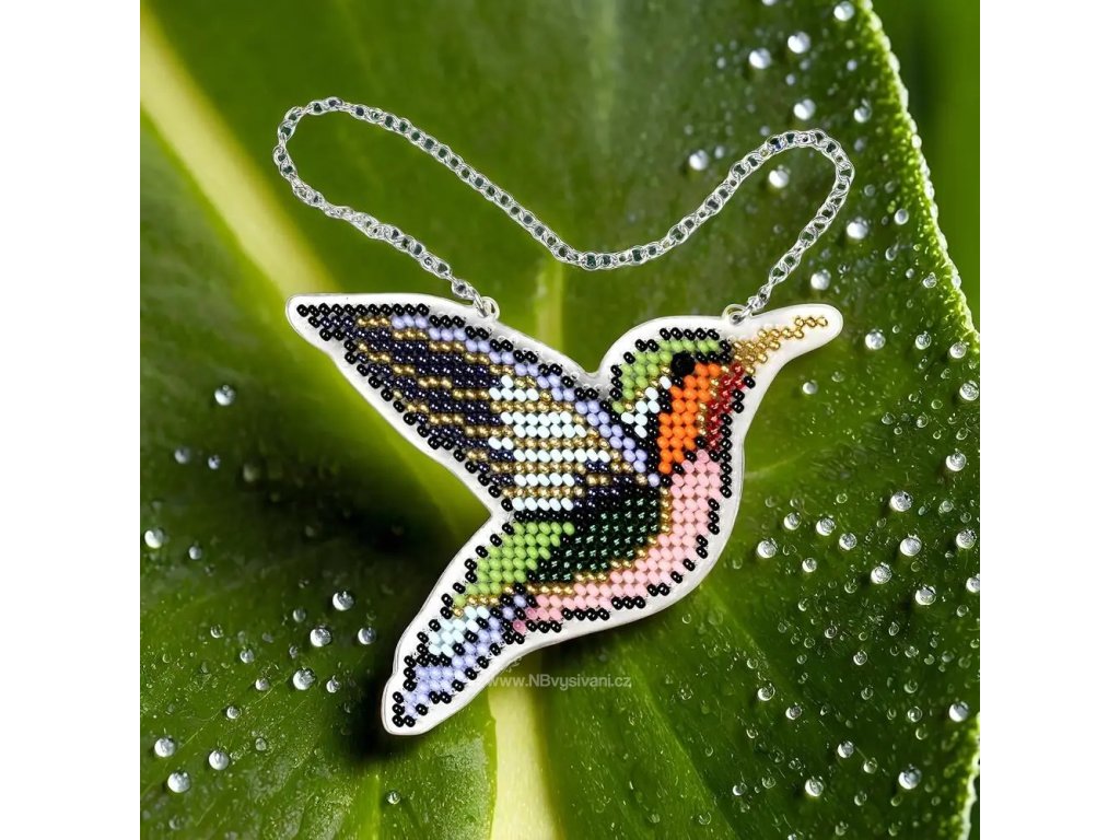 WON-FLPL089 Přívěsek - kolibřík (vyšívaný plastový podklad)