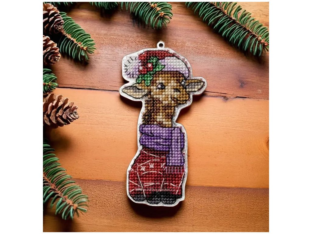 WON-FLX004 Žirafa s fialovou šálou (vyšívaný plastový podklad)