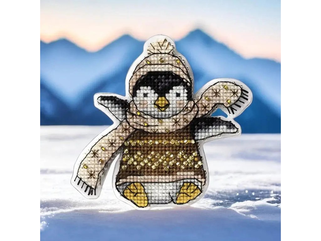 WON-FLX016 Tučňák se šálou a kulichem (vyšívaný plastový podklad)
