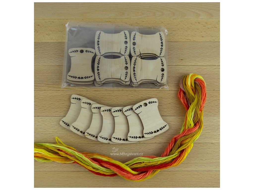 Dřevěná ozdobná namotávátka pro vyšívací příze firmy Embroidery Craft (20ks).
