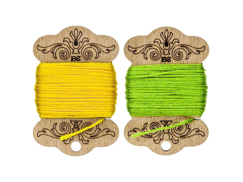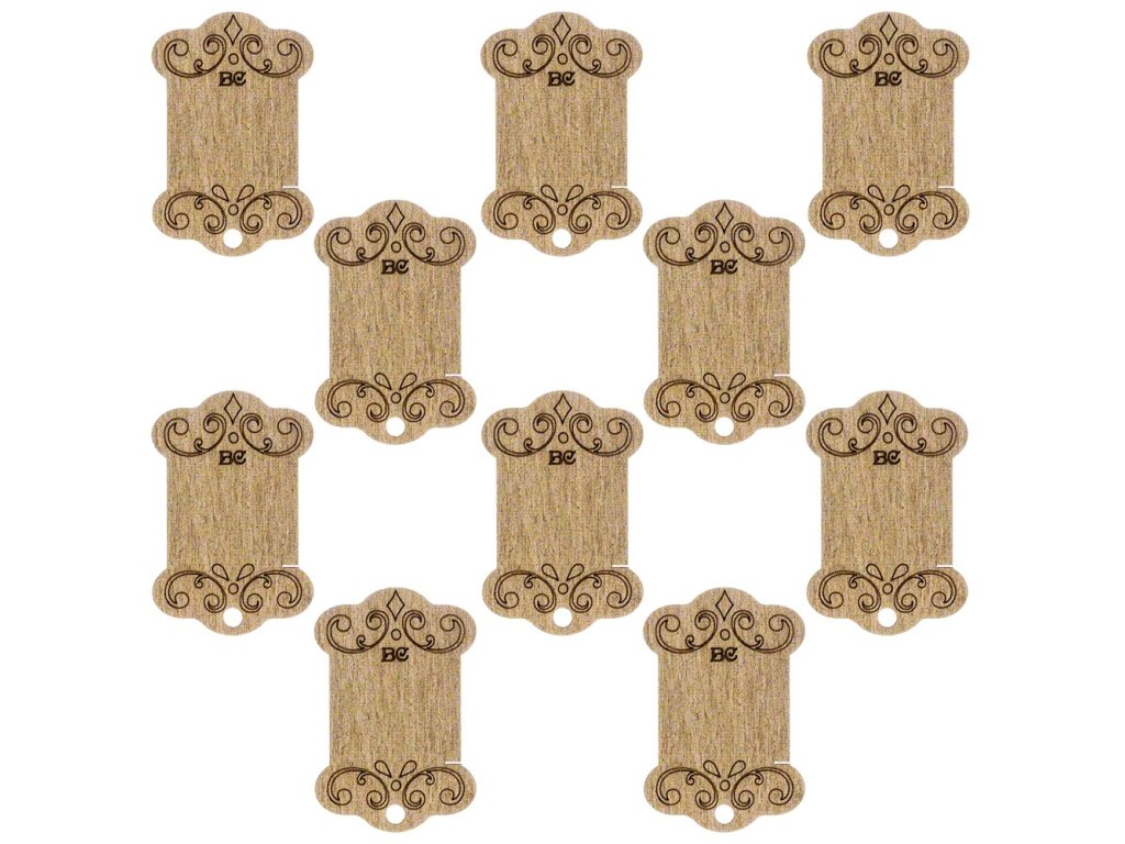 Dřevěná ozdobná namotávátka pro vyšívací příze firmy Wonderland (10ks) na drátěném kroužku.