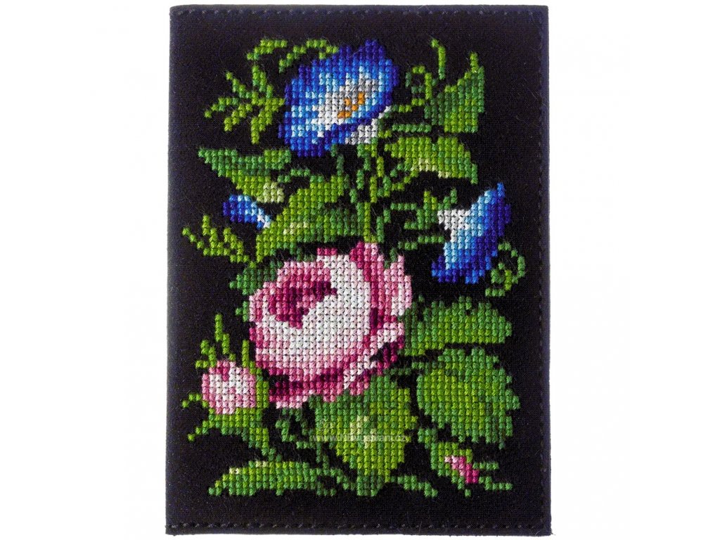 WON-FLHL044 Obal na cestovní pas k vyšití - květiny