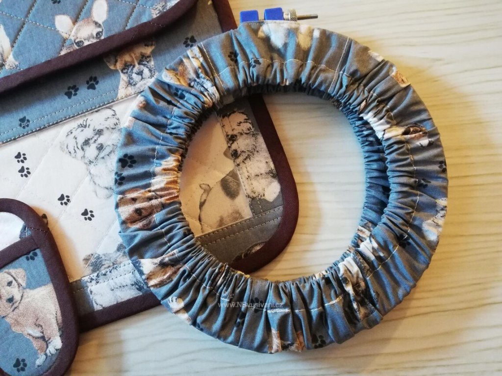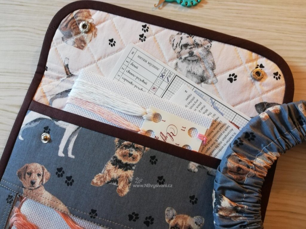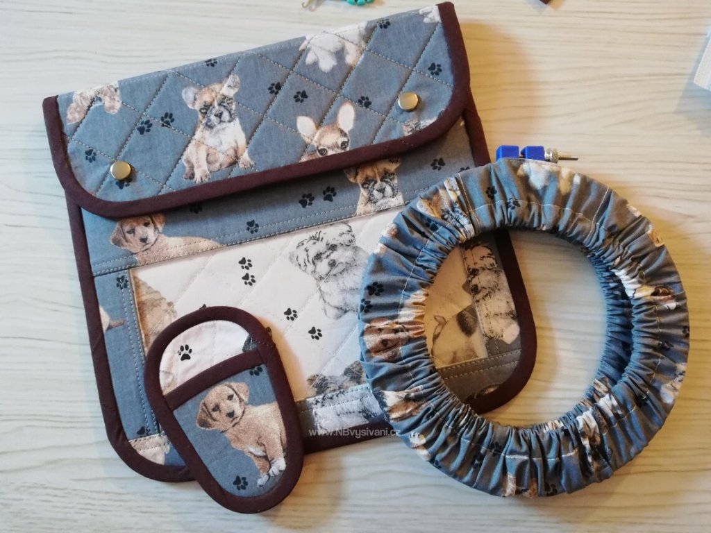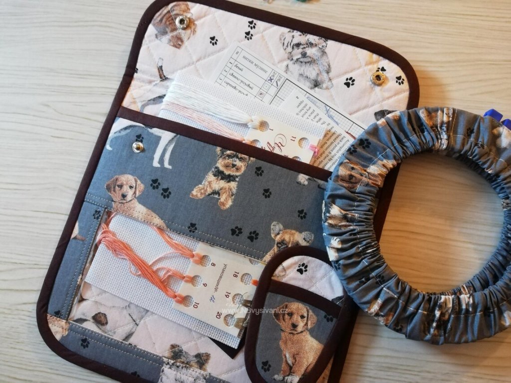 Praktický, ručně šitý cestovní set s ochranným pouzdrem na nůžky a obalem na vyšívací kruh o velikosti 16-20cm. Vhodné na menší projekty, třeba k vodě a pod.
