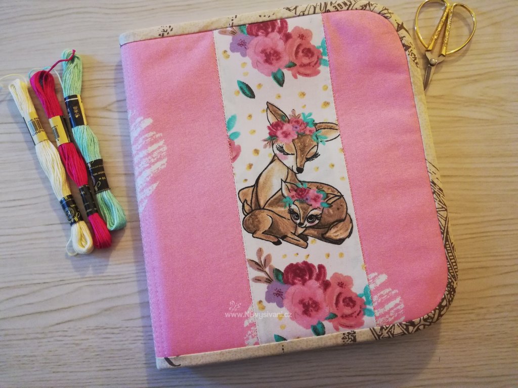 Praktický, ručně šitý cestovní organizér na zip s kapsičkami uvnitř pro úschovu vyšívacích pomůcek a přízí a rozdělaných projektů.
