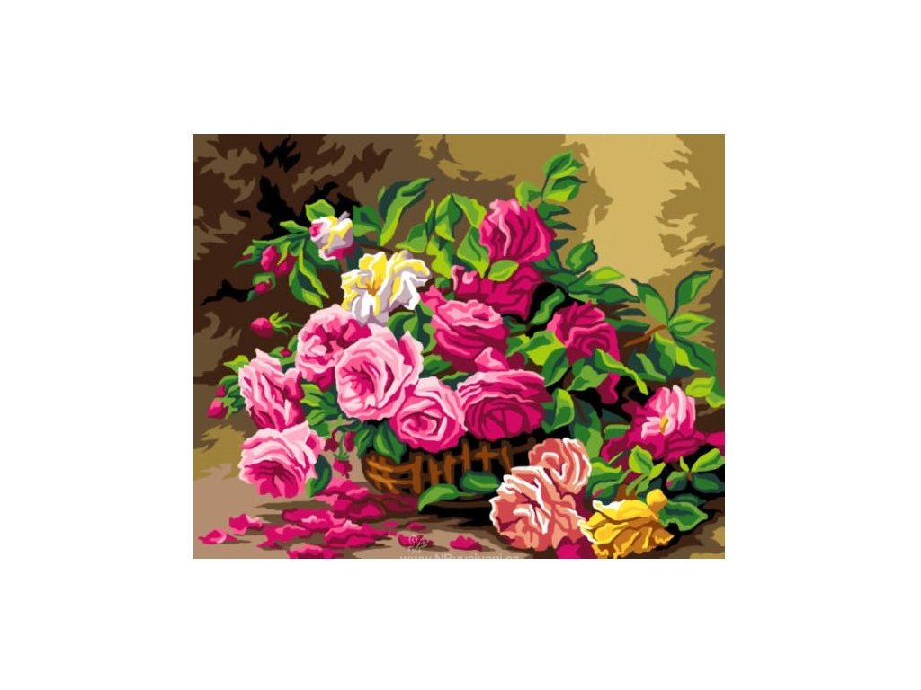 Barevně předtištěný motiv na látce hnědý Stramín s barevným klíčem pro vyšívací příze.