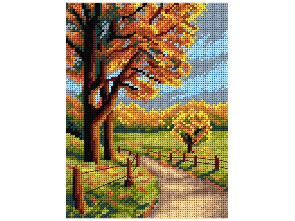 Barevně předtištěný motiv na látce bílý Stramín s barevným klíčem pro vyšívací příze.