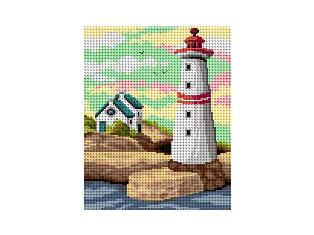 Barevně předtištěný motiv na látce bílý Stramín s barevným klíčem pro vyšívací příze.