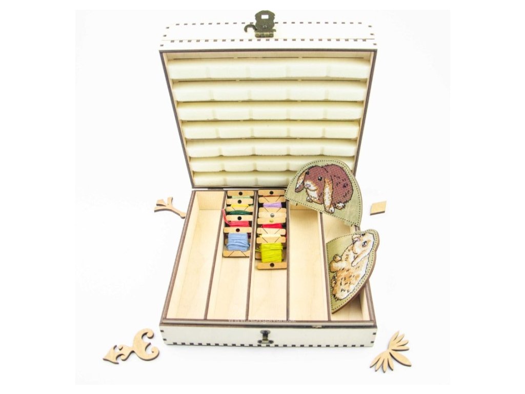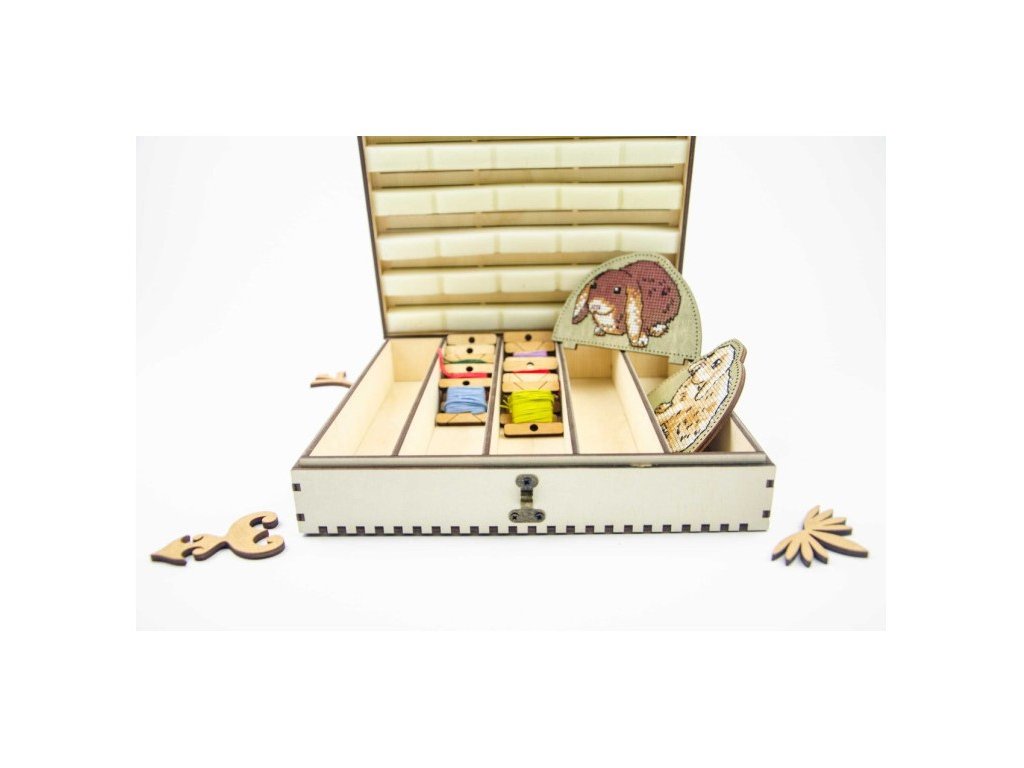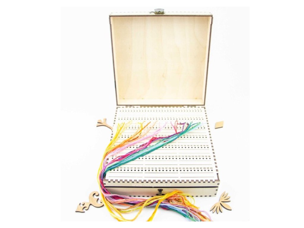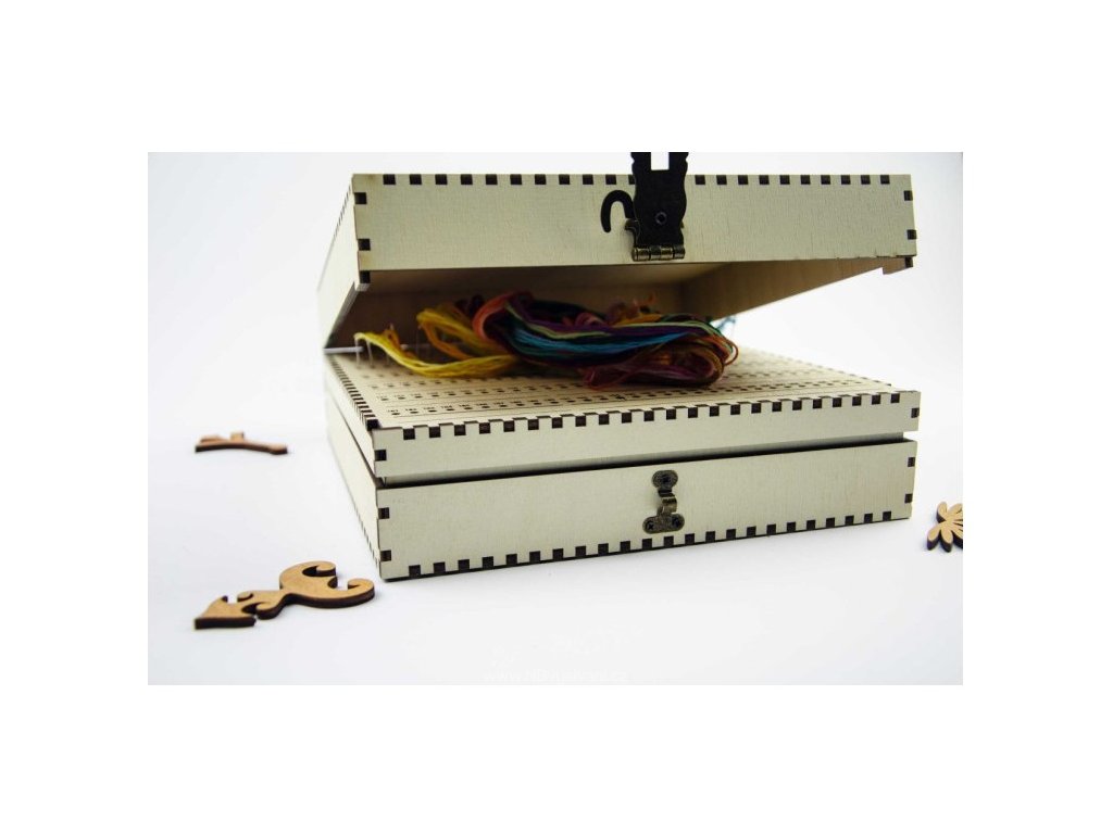 ART-OG066 Dřevěný organizér vyšívacích jehel s návleky a na příze